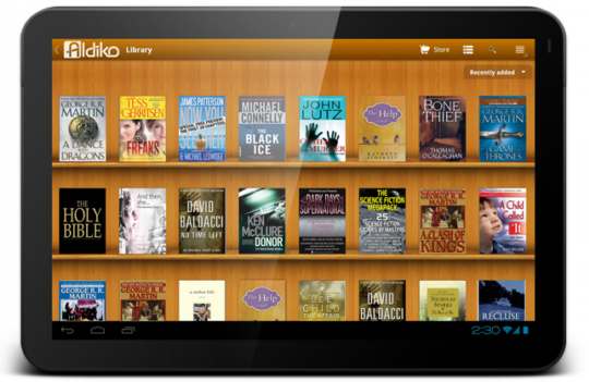 1. Aldiko Book Reader. Solo para Android, permite ver formatos EPUB y PDF. Tiene dos versiones, una gratuita y otra de pago (a US$3,09 y sin publicidad), que tienen como beneficio que podemos configurar fuentes, colores e interlineado, así como marcar páginas. Uno puede buscar dentro del documento y utilizar un diccionario, además de organizar nuestros documentos. Puedes descargarlo aquí
